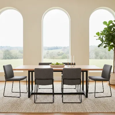 AllModern focuses on modern and contemporary furniture, offering a wide selection of dining tables, including genuine marble and wood options. Their designs often feature clean lines and minimalist silhouettes, making them suitable for design-forward homes. AllModern tables, such as the Ola Dining Table with its marble top and mango wood base, frequently combine contrasting materials to create versatile and aesthetically pleasing pieces for everyday dining and entertaining.